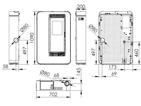 - Posibilidad de salida de gases superior, trasera o lat.dcho