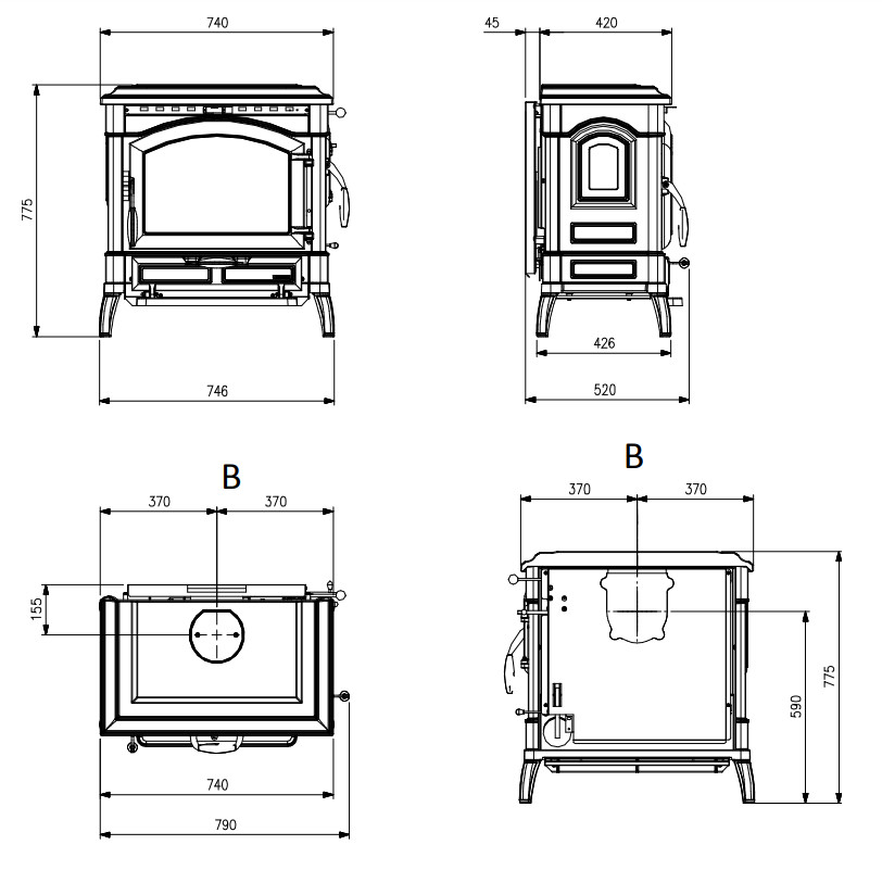 Estufa completamente de fundición esmaltada.
